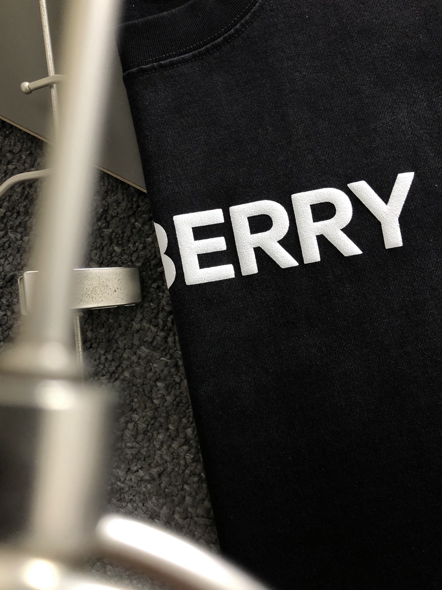 New Burberry Top grade black retro washed and printed trendy brand counter short sleeved
