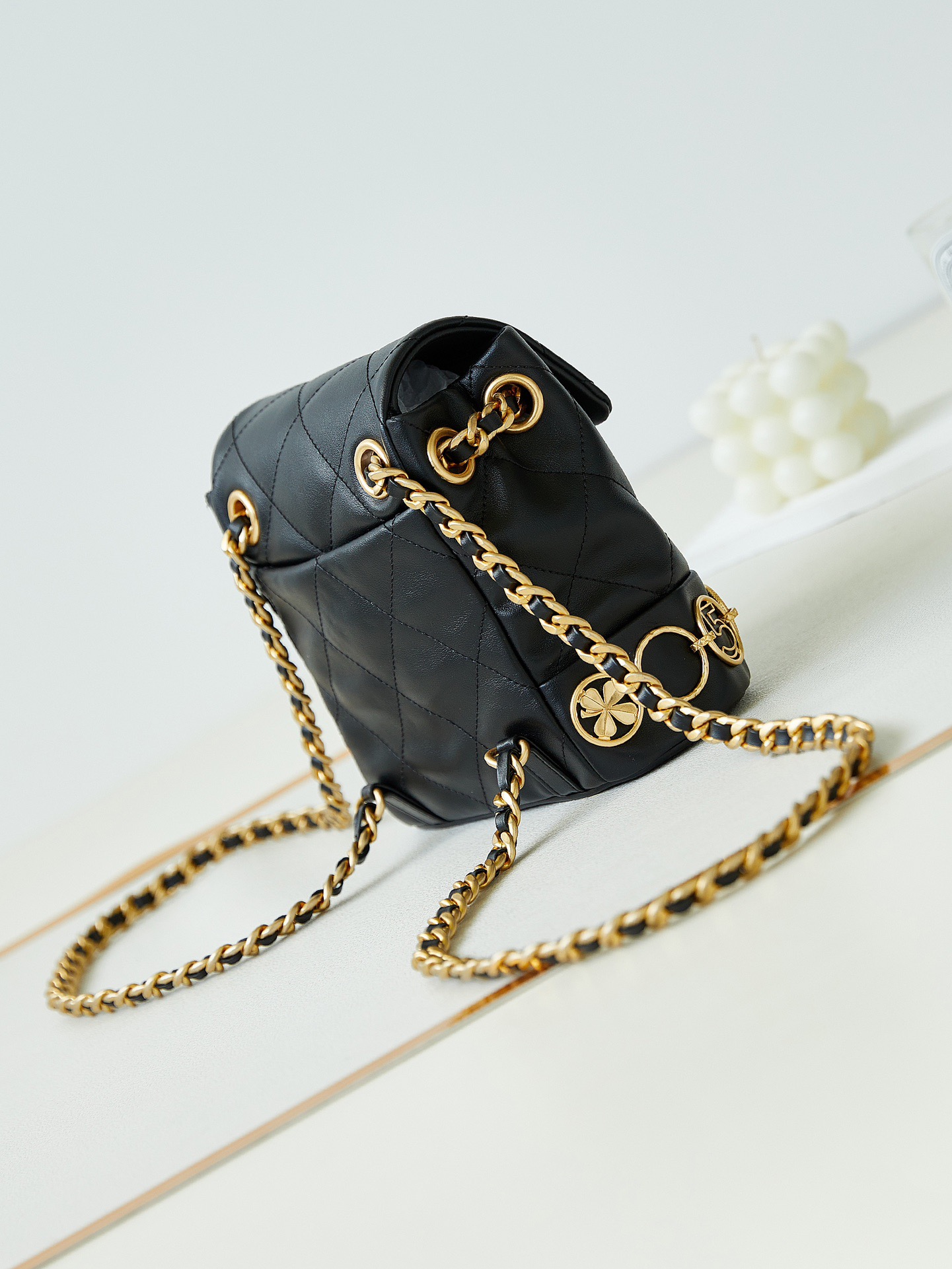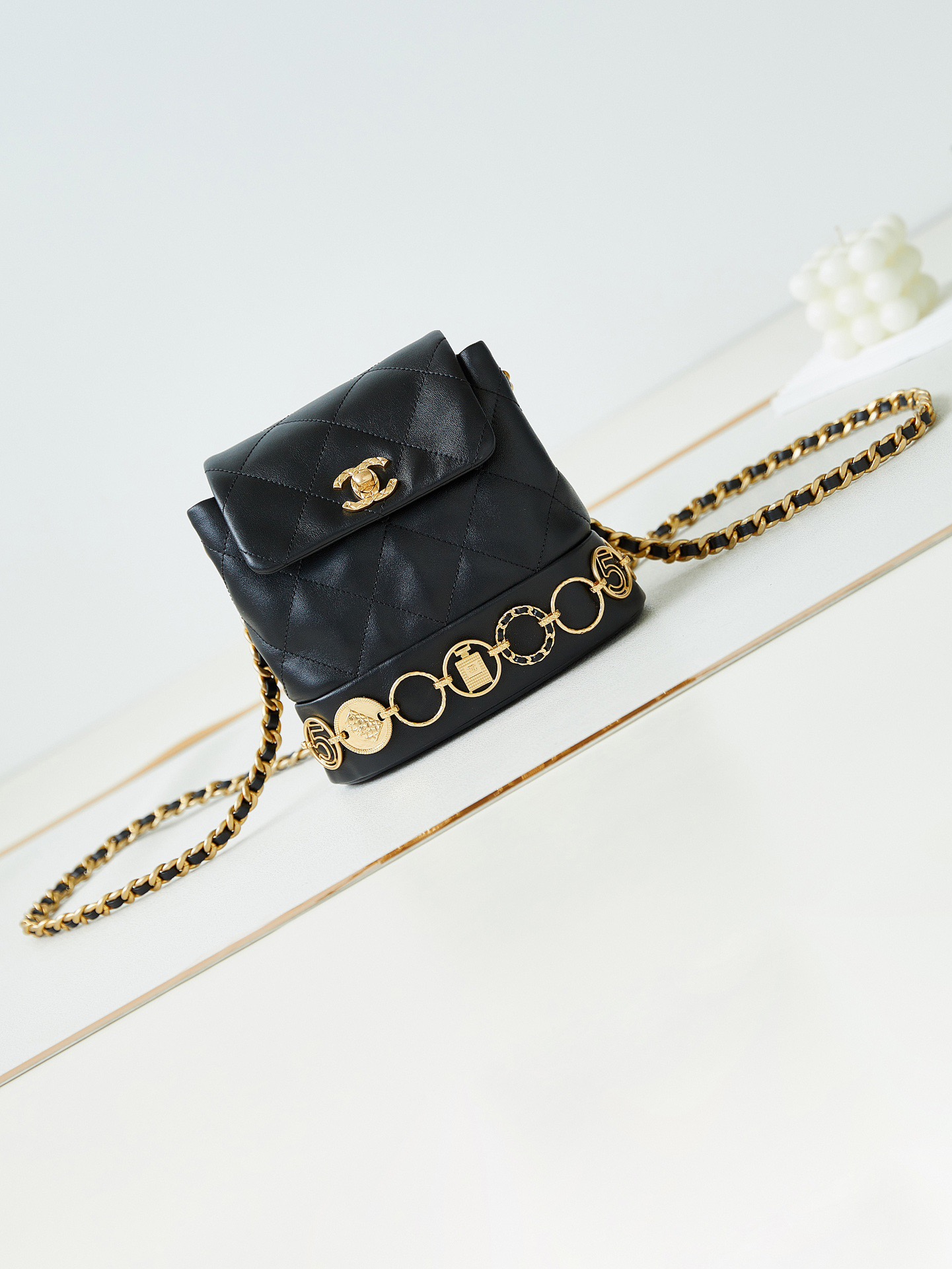 New Chanel 23b gold coin backpack Chanel backpack is the most shiny backpack in the backpack series. I really think it is suitable for sisters in the sports department 🖤🥇 The gold coins are so beautiful, don't you take them out to bask in the sun? This one belongs to a small backpack, but it has a large capacity and a sheepskin texture, making it very comfortable to use. This circle of gold coins gives me a kind of ancient Egyptian high priest, with a wild beauty 🐯💜 Without gold coins, it looks a bit monotonous. Model number as4275,