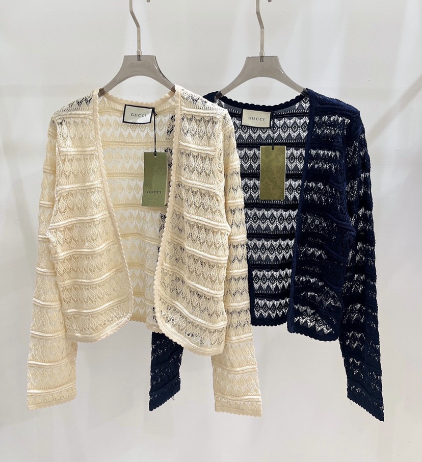 DetailExclusive Launch ❤ Gucci's new spring and summer product hook flower hollowed out knitted cardigan is comfortable, breathable, and not stuffy. Lightweight upper body, fashionable little sister's essential sunscreen item yo two color SML three size