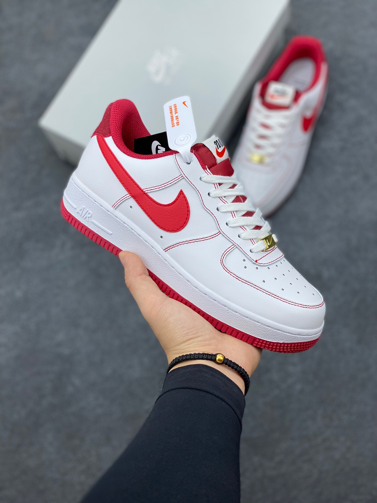 Nike air force 1 low 07 "first use" company level official sales white and red lines low top Air Force One casual board shoes custom leather raw last raw cardboard pure air force version