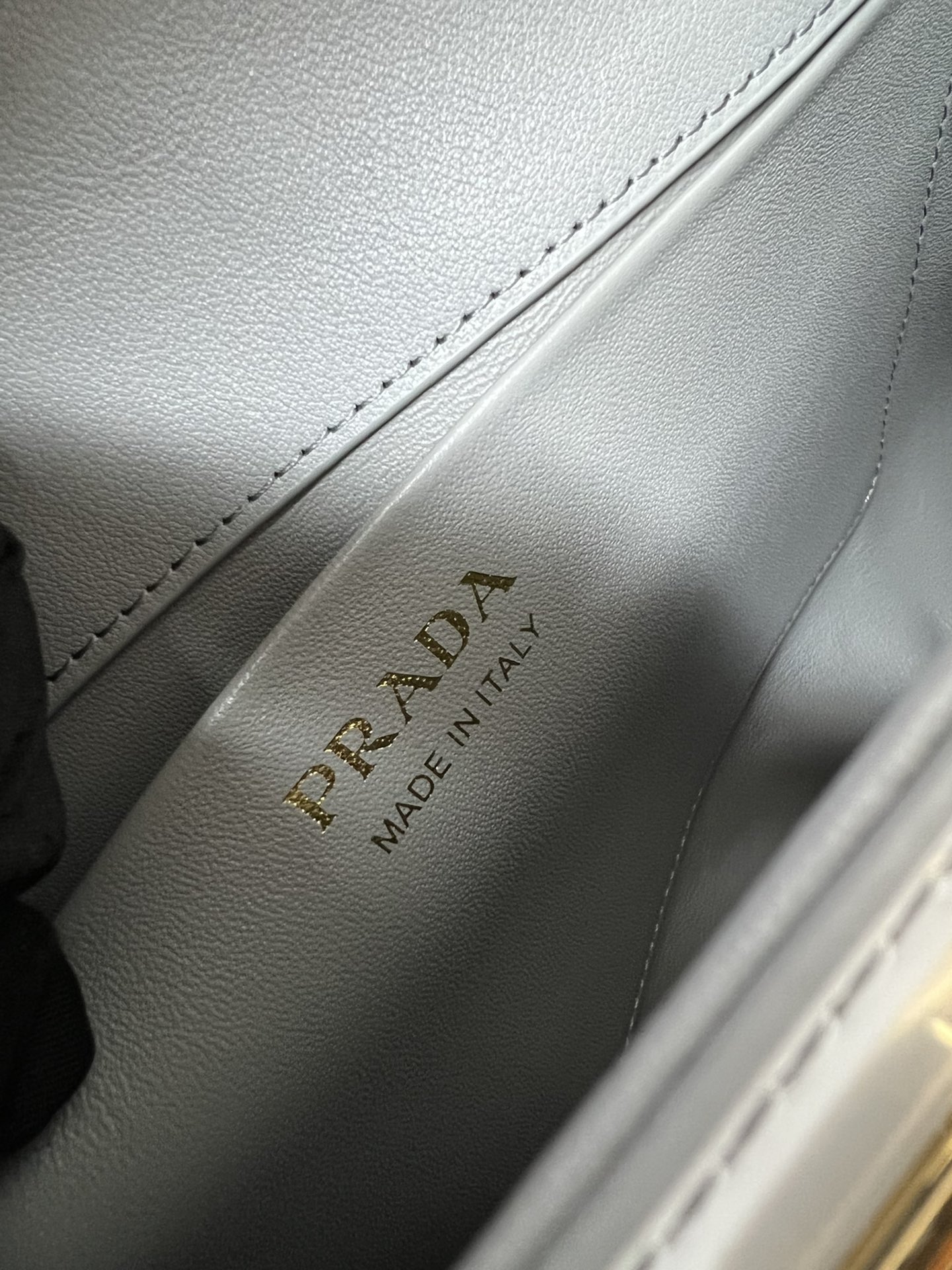 New Prada 🎉 Runway style 🎉 1bd342 New 🎉🎉 This runway style features imported glossy calf leather, paired with sheepskin. The trapezoidal design is full of artistic sense, equipped with two detachable shoulder straps of long and short length, and the front panel is equipped with engraved micro label lock head flip design, which can be exchanged and paired for different occasions and clothing. Large capacity space. For upper body effect bars, if you like babies, hurry up and get started 🎉🎉 Length 34x Height 19x Bottom 8cm