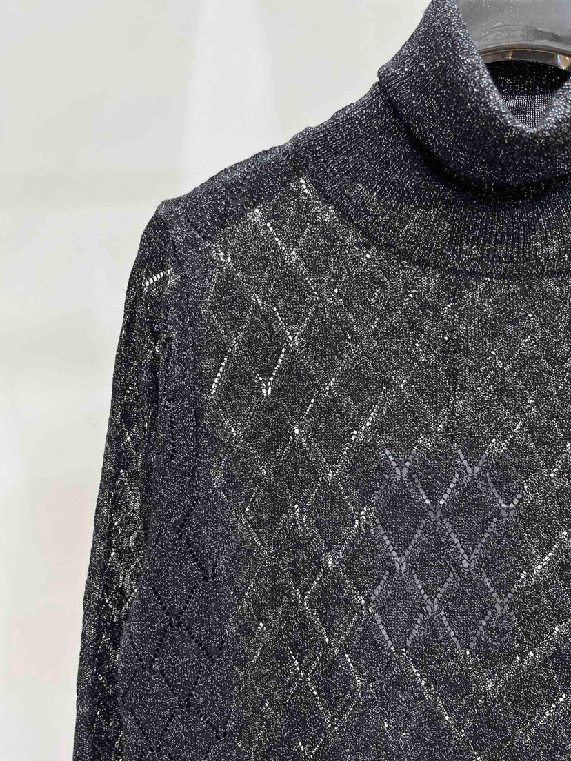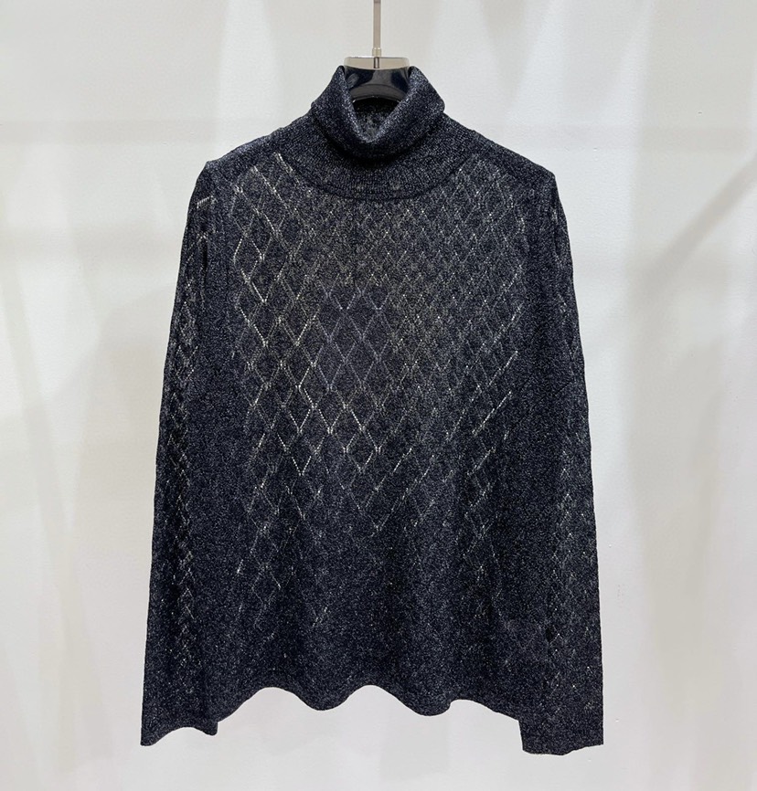 Home / Women's Clothing / New ❤️ Chanel Early Autumn New Gold Thread High Neck Hollow out Knit Long Sleeves