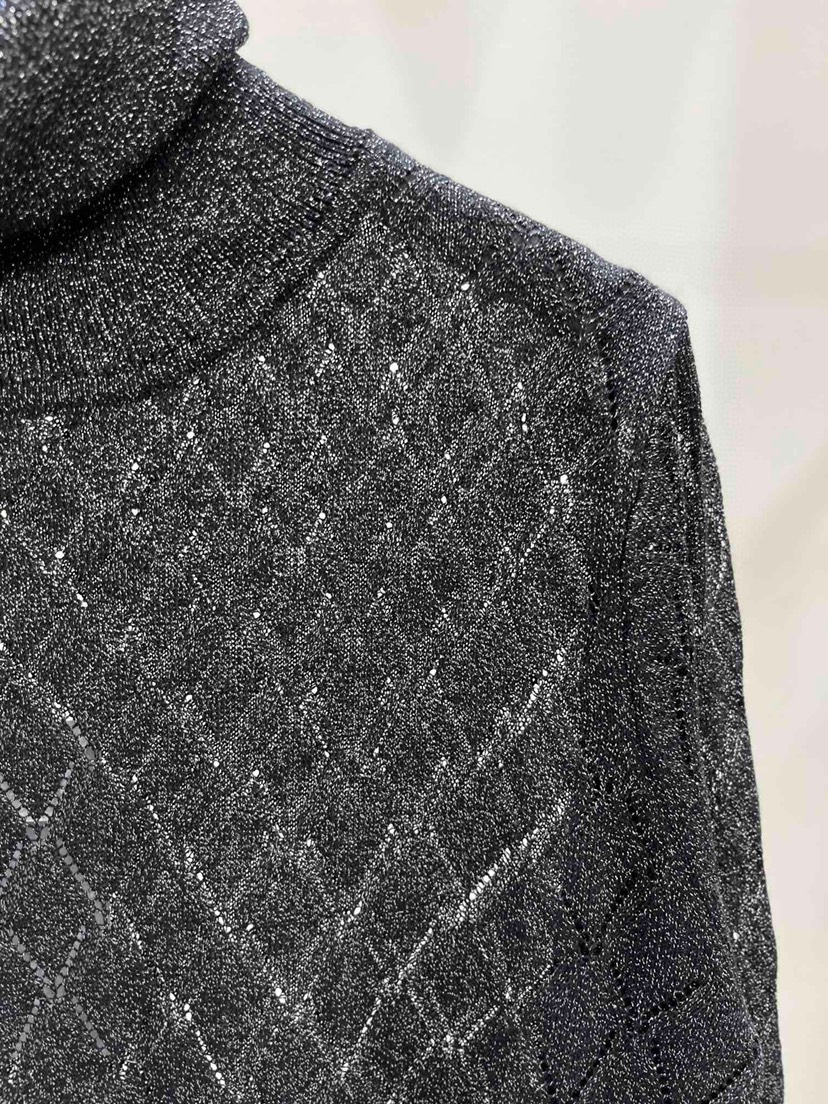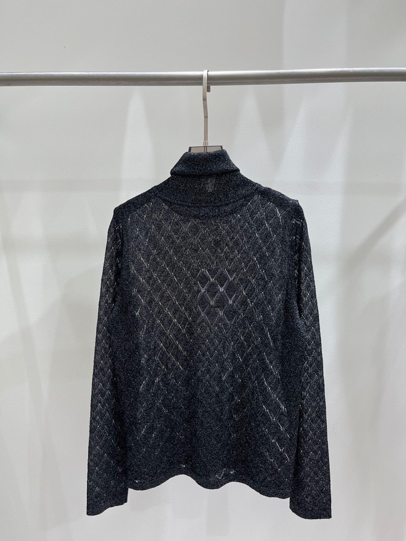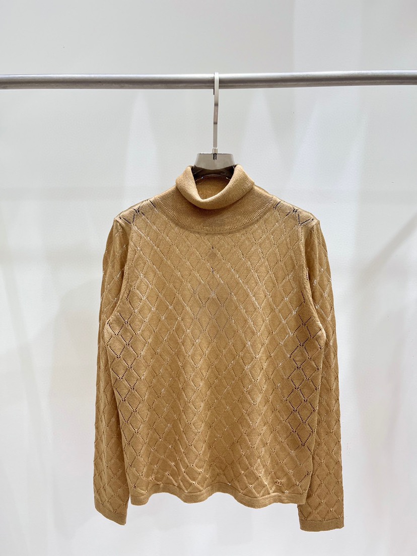 New ❤️ Chanel Early Autumn New Gold Thread High Neck Hollow out Knit Long Sleeves