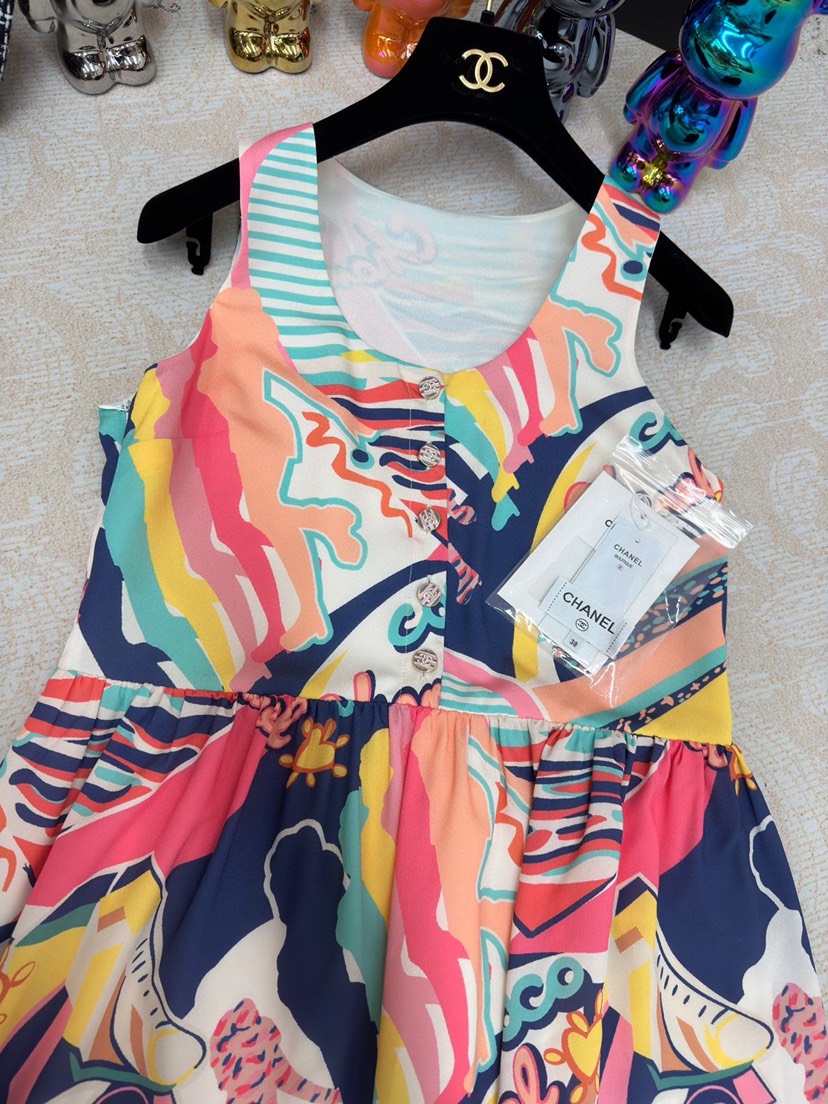 • New Chanel 23 Spring/Summer New Colorful Tie Dye Print Strap Dress